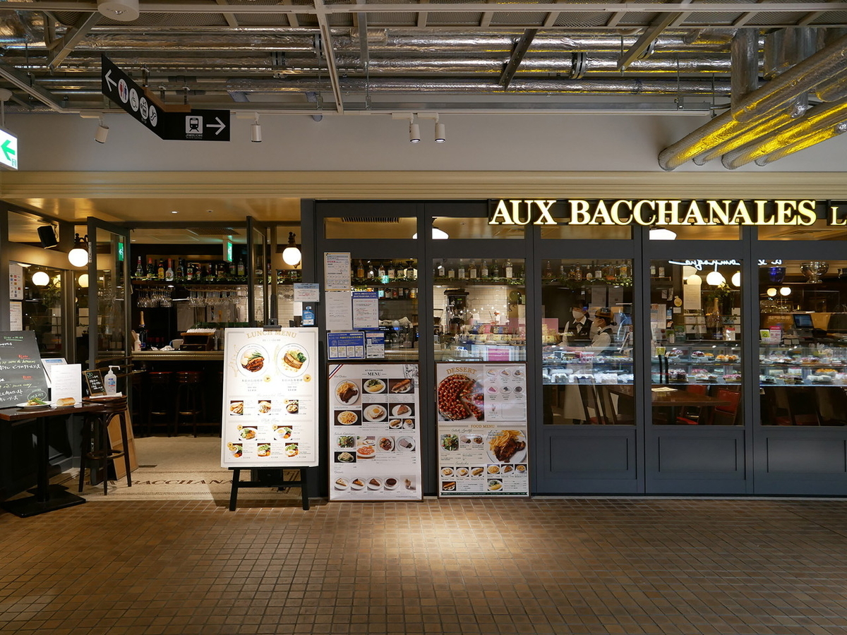 JR横浜駅 中央北改札横に新設されたシァル改札(ICカード専用7:00~22:30利用可)を出て、通路(スロープ)の突き当りに「AUX BACCHANALES La Sœur(オーバカナル ラスール)」があります。